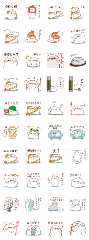 毒舌あざらしシリーズの中でも、使い勝手の良いスタンプが集まっていると思います。流行り言葉は「よさみ」くらいなので、これに関しては賞味期限が短いかもしれませんが、それ以外については長く使えそう。色々な場面で末永く使えそうなのが良いです。