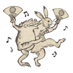 雉◯/Kiji-Maru Worksが描く鳥獣戯画スタンプセット。文字を使用していないので、自由な解釈でお使いいただけます。
