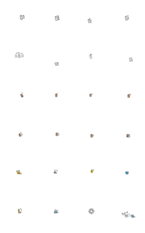 うさぎとクマと猿とバクとヒヨコとコアラとキリンとゾウがいます。ちいさいので目を凝らして見てください。yae より発売