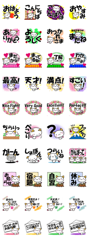 先生、母、家庭教師、塾講師、勉強を教える全ての先生に使えるスタンプ。小・中学生、高校生と楽しく連絡が取れ、あいさつの他、お知らせや励ましをかわいい猫がサポート!Misaki.K より発売