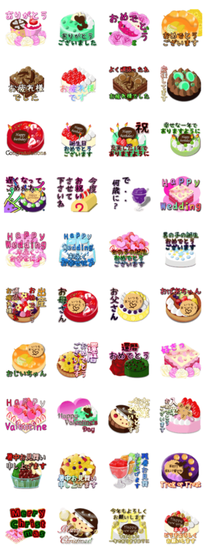 いろんなケーキでお祝いメッセージ スタンプ情報