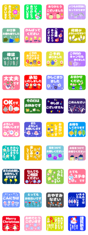 ショップ店員、美容師、エスティシャン、ネイリスト、キャバ嬢などなどお客様へ送るスタンプです。もちろん友達・ママ友にも使いやすいキャラなしのシンプルなスタンプです