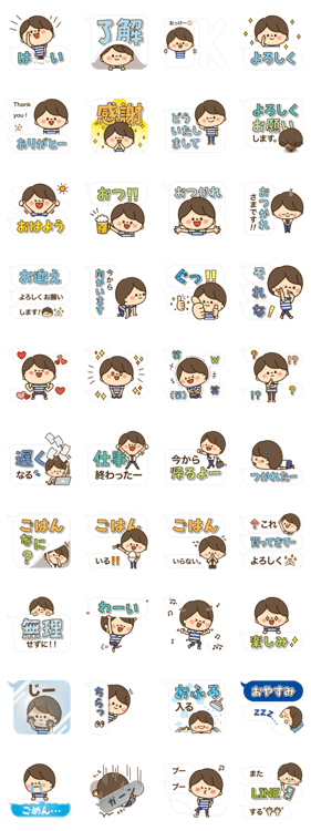 デフォルメされたかわいい旦那の文字入りスタンプです。トークになじむ便利で使いやすいスタンプとなっています。