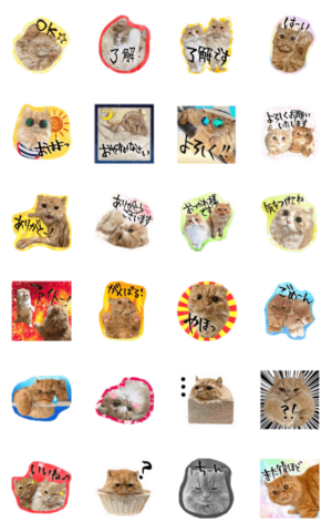 我が家の愛猫(まっちゃ・ぽぷり・おもち・ちろる)のスタンプ登場!アメリカンカールとペルシャのミックス猫ちゃん☆日常で使いやすい!リアルな油絵スタンプです♪