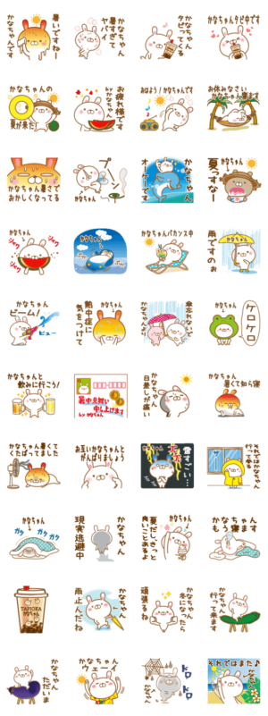 かなちゃんの名前スタンプうさたん夏編 スタンプ画像一覧