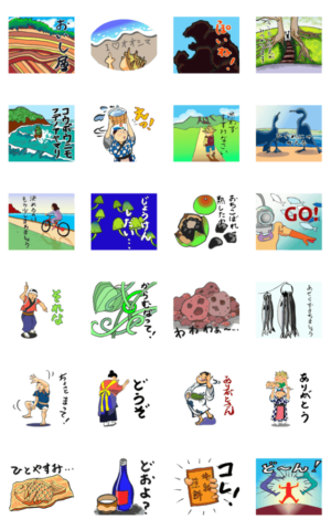 伊豆大島のステキな景色や踊りをテーマにしたスタンプです。ギャラリー TON より発売