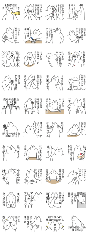 はづきちゃんに送るスタンプ。ほめる、媚びる、煽る、煽り、推し。褒め言葉。彼氏/彼女/友達/大好き/オタク/ヲタク/アイドル。ハヅキ 葉月 羽月/oroninet