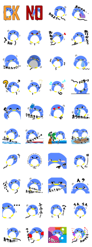 かわいい「ペンギン」の風船のスタンプです。 シリーズで「くま」、「ブタ」、「ネコ」、着せ替え、絵文字もあります。