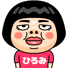 ひろみ(ヒロミ)はとってもブスな女の子。自分の名前入りピンクTシャツを着るちょっと痛い子。自虐的だけどおはようからおやすみまで使える万能な名前スタンプです。