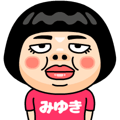 みゆき(ミユキ)はとってもブスな女の子。自分の名前入りピンクTシャツを着るちょっと痛い子。自虐的だけどおはようからおやすみまで使える万能な名前スタンプです。