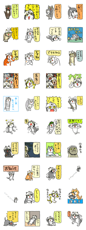 ネットで話題の「仕事猫」のスタンプ。これはかなり初期のものの雰囲気に近いスタンプで、絵柄は他の仕事猫シリーズより少し人を選ぶかもしれない。