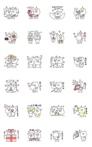 ラブラブなウサギとクマのお誕生日&お祝いスタンプです♡カップル、友達、家族、大切な人へ♡♡♡