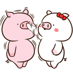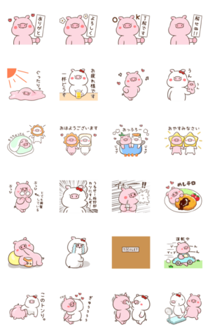 おかげさまで動ブタ第4弾♪面白可愛く激しくシュールに、楽しく動く仲良しぶたさんカップルです。そこそこ使いやすいブタスタいかがですか~ぷっち より発売