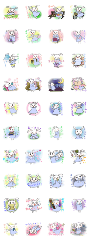 ワンピースがお気に入りのうさぎの女の子「うー」。 大きめ文字で、毎日のご挨拶とお茶目なリアクションを集めました! 関西弁でしゃべります☆ ※英語版もよろしくね!