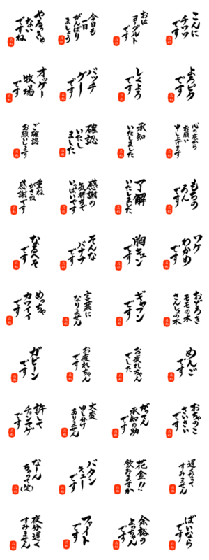 花形さん用死語入り筆文字敬語 スタンプ画像一覧