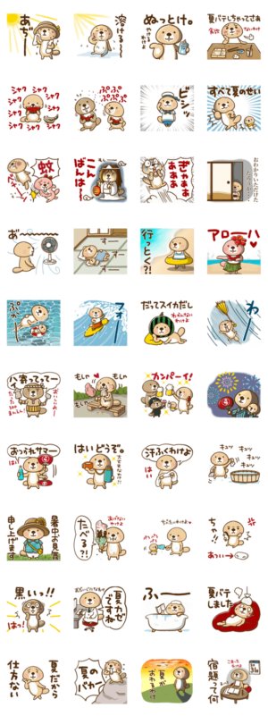 あなたに代わってストレートに気持ちを伝えるラッコさんの夏スタンプ第二弾。夏のご挨拶、台風、お祭り、夏の食べ物など盛りだくさん!夏に使える楽しいスタンプです。satoco より発売