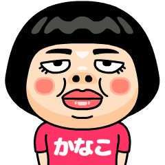 かなこ(カナコ)はとってもブスな女の子。自分の名前入りピンクTシャツを着るちょっと痛い子。自虐的だけどおはようからおやすみまで使える万能な名前スタンプです。