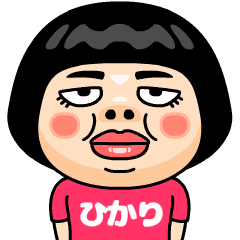 ひかり(ヒカリ)はとってもブスな女の子。自分の名前入りピンクTシャツを着るちょっと痛い子。自虐的だけどおはようからおやすみまで使える万能な名前スタンプです。
