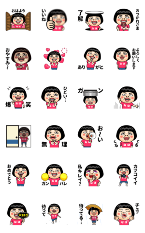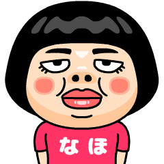 なほ(ナホ)はとってもブスな女の子。自分の名前入りピンクTシャツを着るちょっと痛い子。自虐的だけどおはようからおやすみまで使える万能な名前スタンプです。くーが より発売