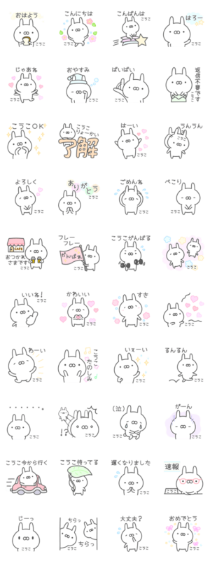 伝えるうさぎスタンプの新シリーズ。女子力高めのこうこさん専用スタンプです。キラキラしたかわいいうさぎと一緒に、日常会話を楽しんでください。