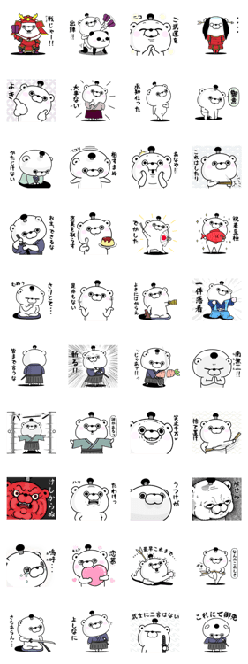 かわいいくまさんの武士語のスタンプです。 ※ゲスト出演:パンダさんヨッシースタンプ より発売