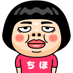 ちほ(チホ)はとってもブスな女の子。自分の名前入りピンクTシャツを着るちょっと痛い子。自虐的だけどおはようからおやすみまで使える万能な名前スタンプです。