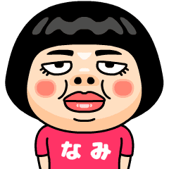 なみ(ナミ)はとってもブスな女の子。自分の名前入りピンクTシャツを着るちょっと痛い子。自虐的だけどおはようからおやすみまで使える万能な名前スタンプです。