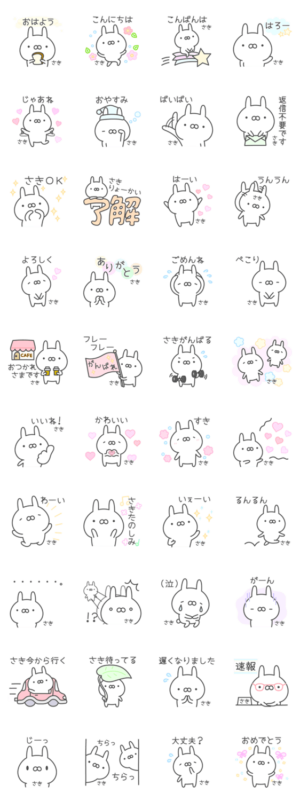 伝えるうさぎスタンプの新シリーズ。女子力高めのさきさん専用スタンプです。キラキラしたかわいいうさぎと一緒に、日常会話を楽しんでください。