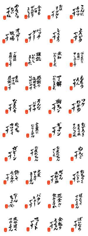 宇梶さん用死語入り筆文字敬語 スタンプ画像一覧