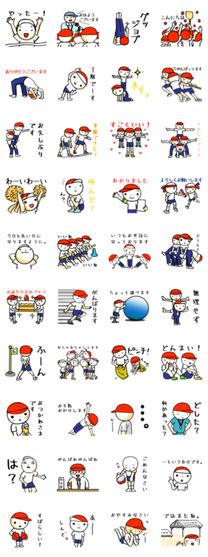 運動会が好きな人も嫌いな人も。 運動会のイラストであいさつしましょう。 毎日使える楽しいスタンプです。みるみるスタンプ部 より発売