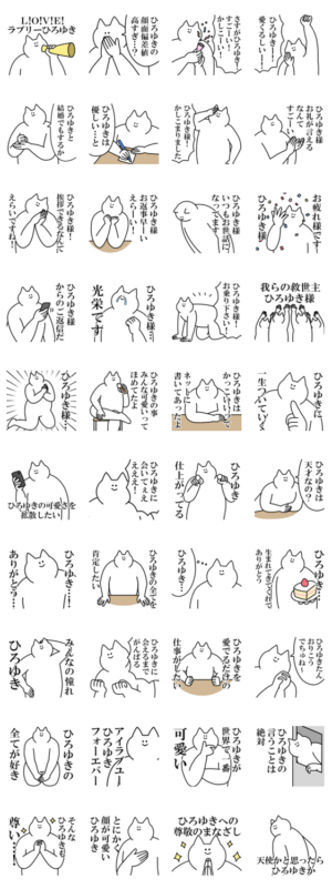 ひろゆきくんに送るスタンプ。ほめる、媚びる、煽る、煽り、推し。褒め言葉。彼氏/彼女/友達/大好き/オタク/ヲタク/アイドル。ヒロユキ 裕之 博之 浩之 博幸 浩行/oroninetoroninet より発売