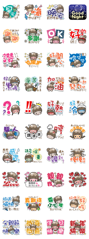 【台湾×日本語】二か国語★メガネ女子 スタンプ画像一覧