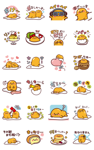 ゆるかわぐでたま スタンプに書いてある文字一覧