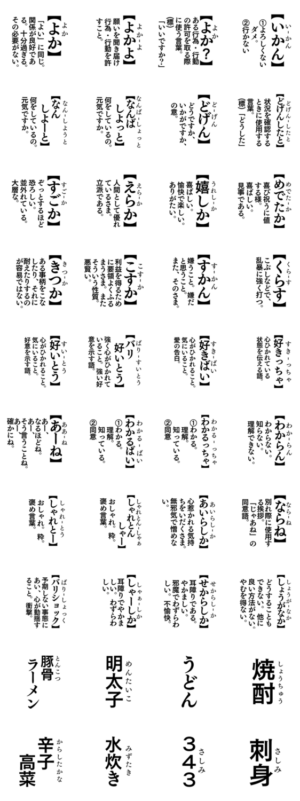 博多弁の辞書風スタンプ。北九州弁や筑豊弁等々も含まれています。福岡弁。える より発売