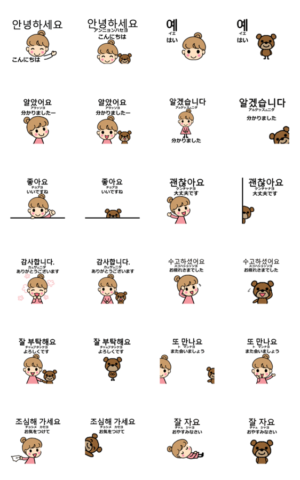 アンニョン!丁寧なハングルと日本語のかわいいスタンプ。使いやすいものだけを厳選。語学勉強中の友達、韓流友達、KPOP友、家族に!毎日使える!プレゼントにも!