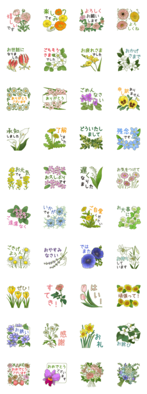 綺麗なお花の絵を添えてご挨拶が出来るのが、嬉しいスタンプです。送った友達が癒されるって言っていました。