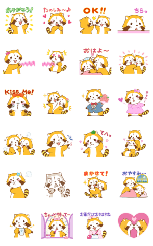 ラスカルと、ガールフレンドのリリィのラブラブなスタンプ。カップルで送りあったり、気になる人に送ってみてね♪もちろん友だち同士のトークにもOK☆