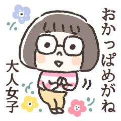 おかっぱめがねの大人女子スタンプ スタンプ情報