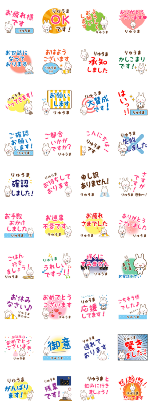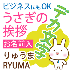 りゅうま様用うさぎデカ文字挨拶!お仕事にもOK[リュウマ/琉真/龍磨/竜魔/瑠真/隆摩/竜眞/流麻/隆馬/留丸/劉魔/硫摩/柳万/笠倍/冶蒔/溜麻]名前入りスタンプ姓苗字なまえお名前入りスタンプ専用★アイシスデザイン株式会社 より発売