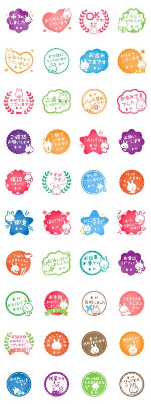 しまむら/島村様専用★うさぎの大人日常マナーや会社仕事丁寧敬語挨拶スタンプ/兎印鑑/兔消しゴムはんこ風/ネーム判子/ウサギハンコお名前入り/苗字姓/なまえ/ビジネス職場お名前入りスタンプ専用★アイシスデザイン株式会社 より発売