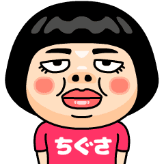 ちぐさ(チグサ)はとってもブスな女の子。自分の名前入りピンクTシャツを着るちょっと痛い子。自虐的だけどおはようからおやすみまで使える万能な名前スタンプです。