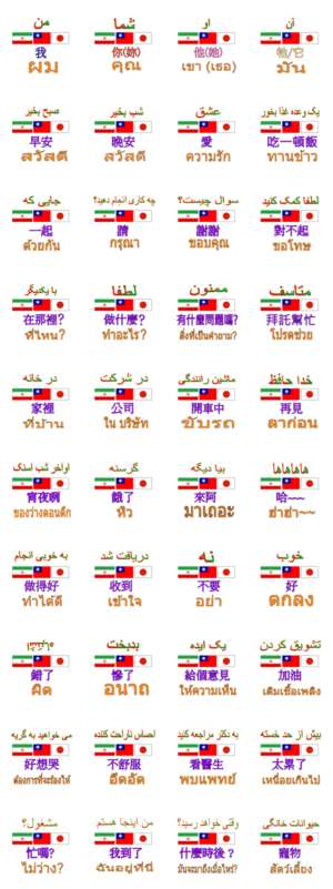 14以上の言語. 100以上のステッカーの組み合わせ。英語-日本-韓国-インドネシア-ベトナム-インド-ドイツ-フランス-パキスタン(ウルドゥー語)-トルコ-ポルトガル-スペイン
