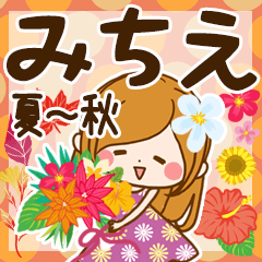 全国の「みちえ」さんに向けたお名前スタンプです♪暑い季節から涼しい季節に向かって長く使える便利スタンプです♪「ほのぼのカノジョ」ルルー作
