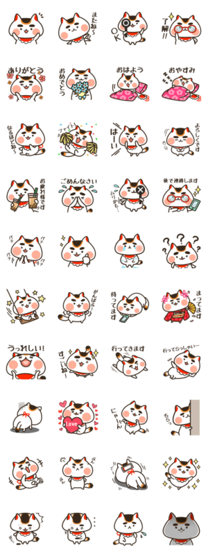 まゆげがチャームポイントの招き猫「ねこまゆ」のスタンプです。morico より発売