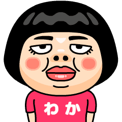 わか(ワカ)はとってもブスな女の子。自分の名前入りピンクTシャツを着るちょっと痛い子。自虐的だけどおはようからおやすみまで使える万能な名前スタンプです。