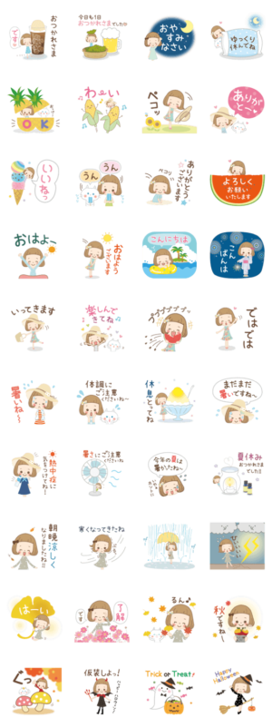 前髪短めな女の子の「夏から秋スタンプ」 スタンプ画像一覧
