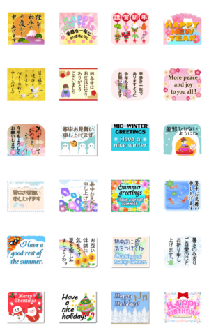 大切な人への季節のご挨拶。年賀状、寒中・暑中・残暑お見舞い等、幅広い年代でお使いいただけます。