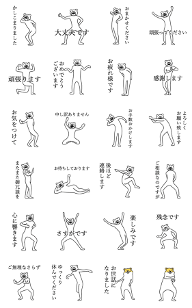 シュールなスタンプが好きなのでけたたましく動くクマシリーズは良く使うのですが、敬語バージョンは上司や目上の人にも使えるのでお気に入りです。動きはおかしいけどちゃんとした敬語なので問題なし!みんなにクスッと笑ってもらえる良スタンプ!
