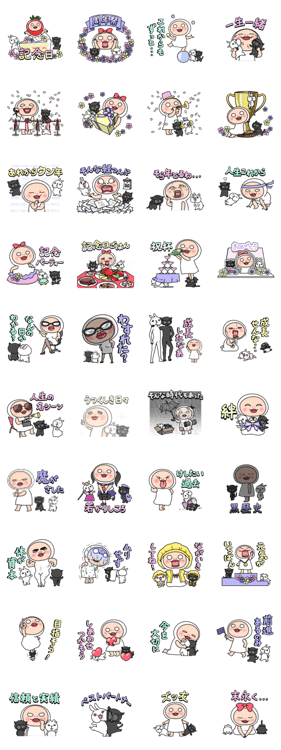 絵日記ブログ『書いたり描いたり』10周年記念スタンプ。 友情出演:ケツアゴウサギ/にゃんたまnikunohi029 より発売