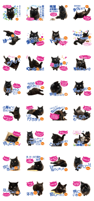 楽天家&モフモフ黒ニャンのスタンプです♪るみりん より発売